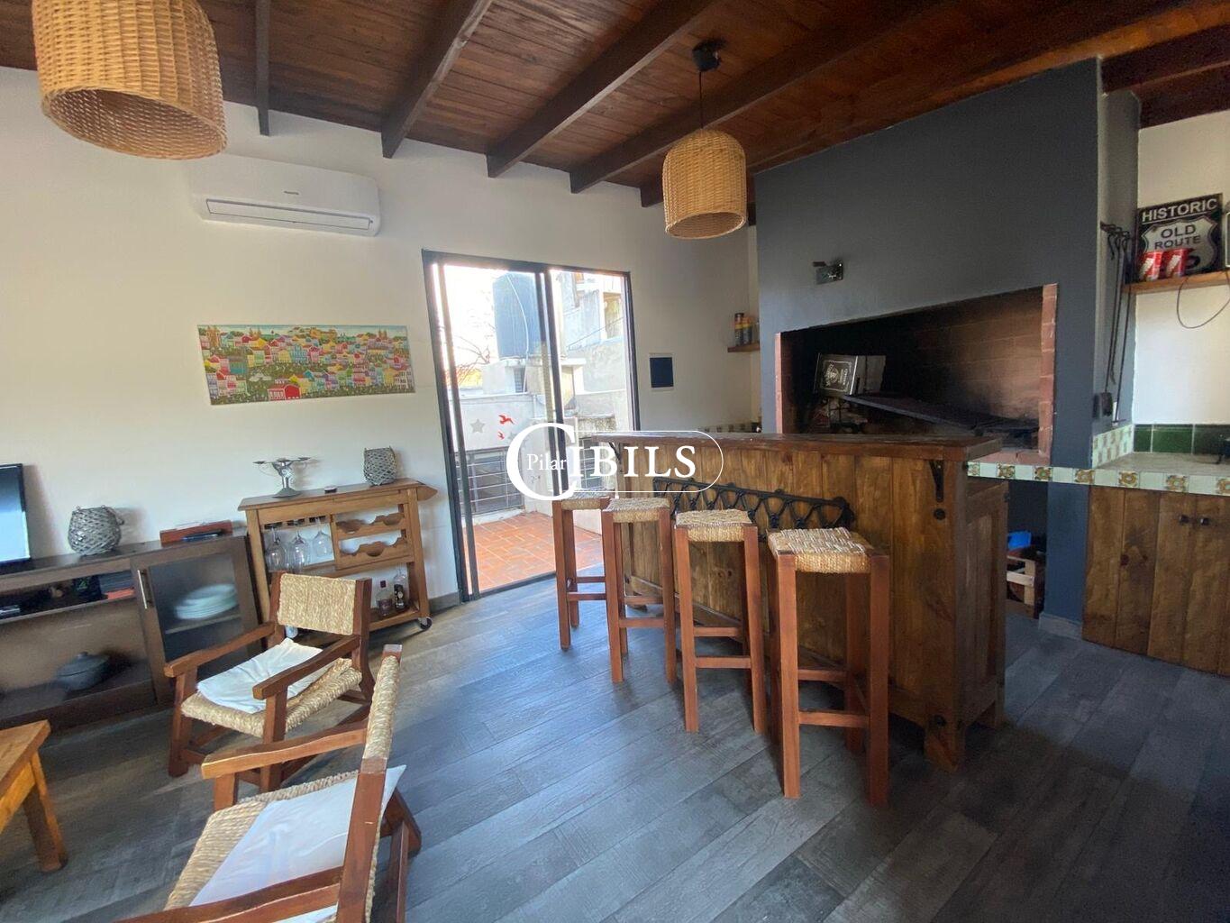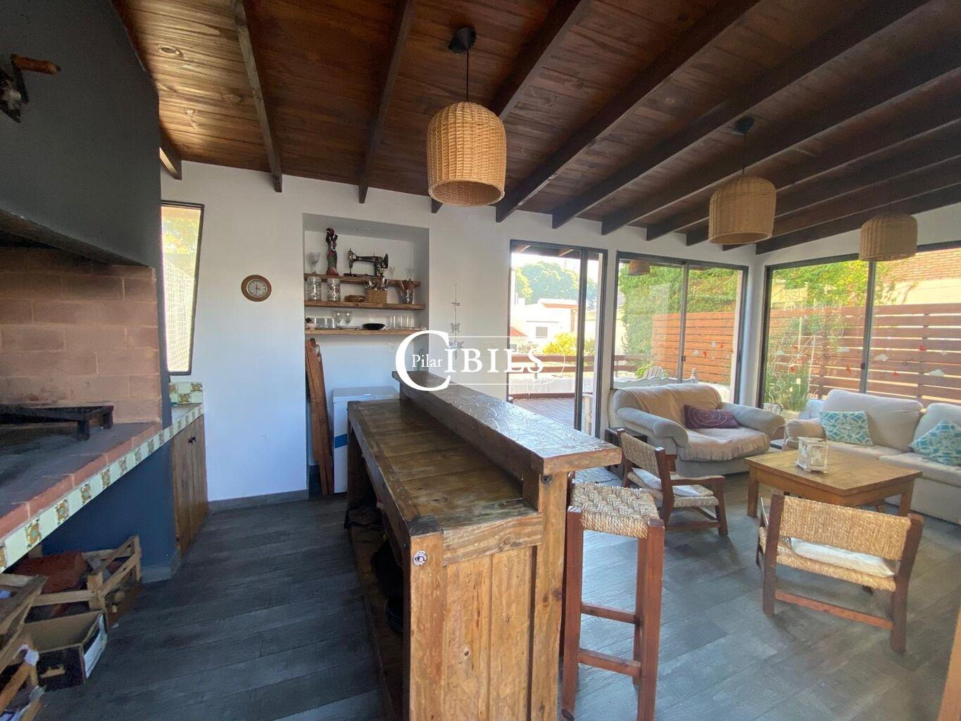Por otro lado, hay un estar diario con otra estufa a leña y la cocina integrada, comunicada a un patio con piscina, parrillero y baño completo.