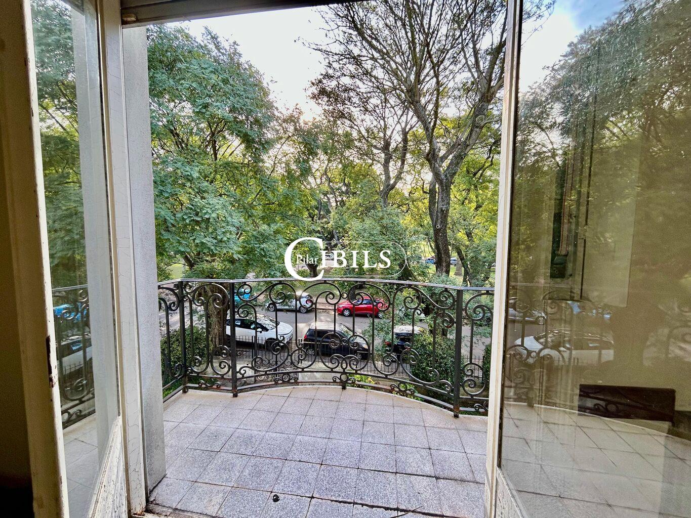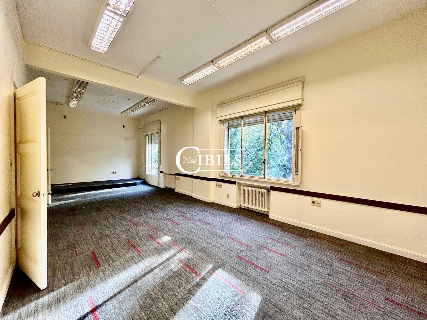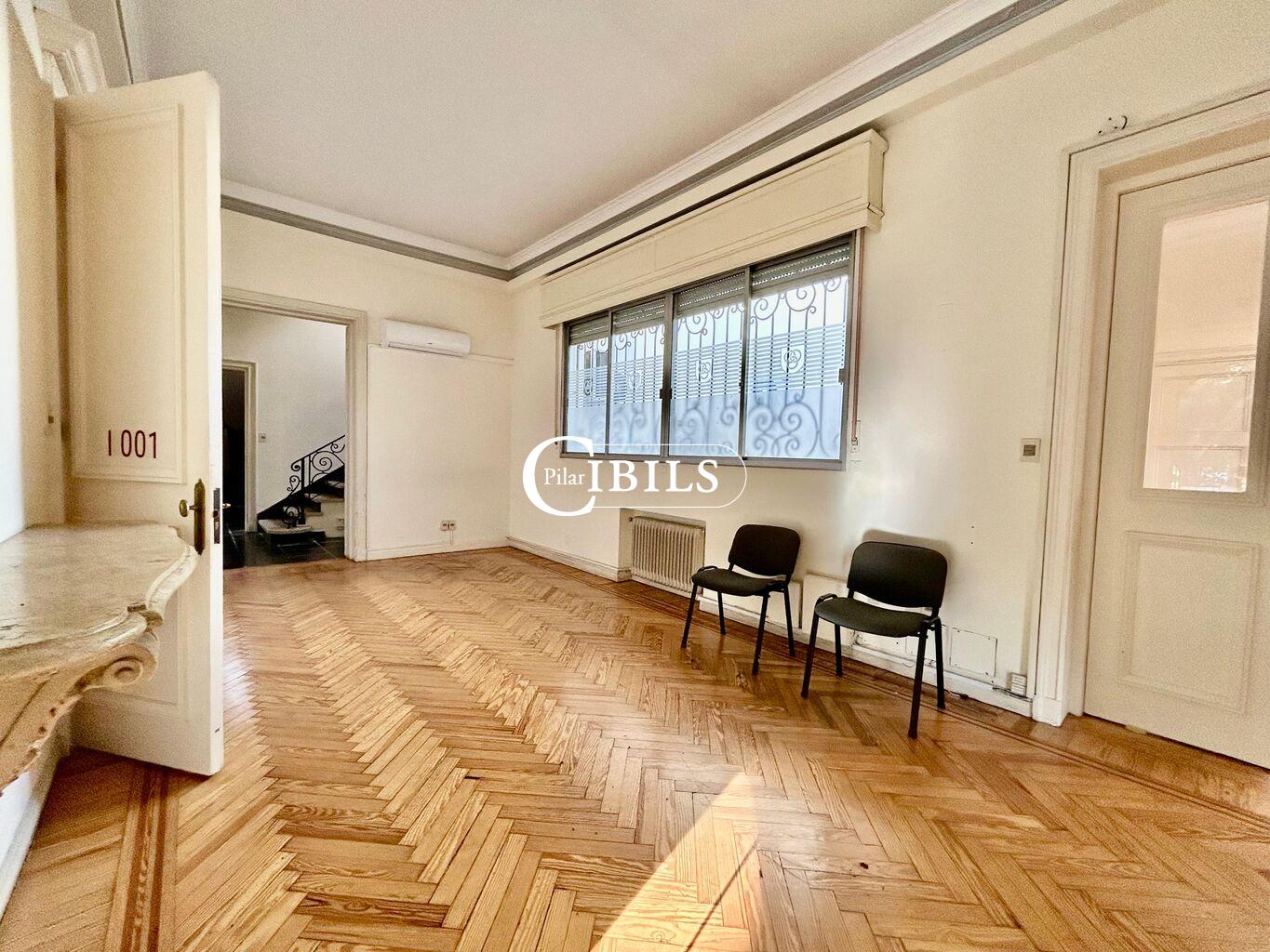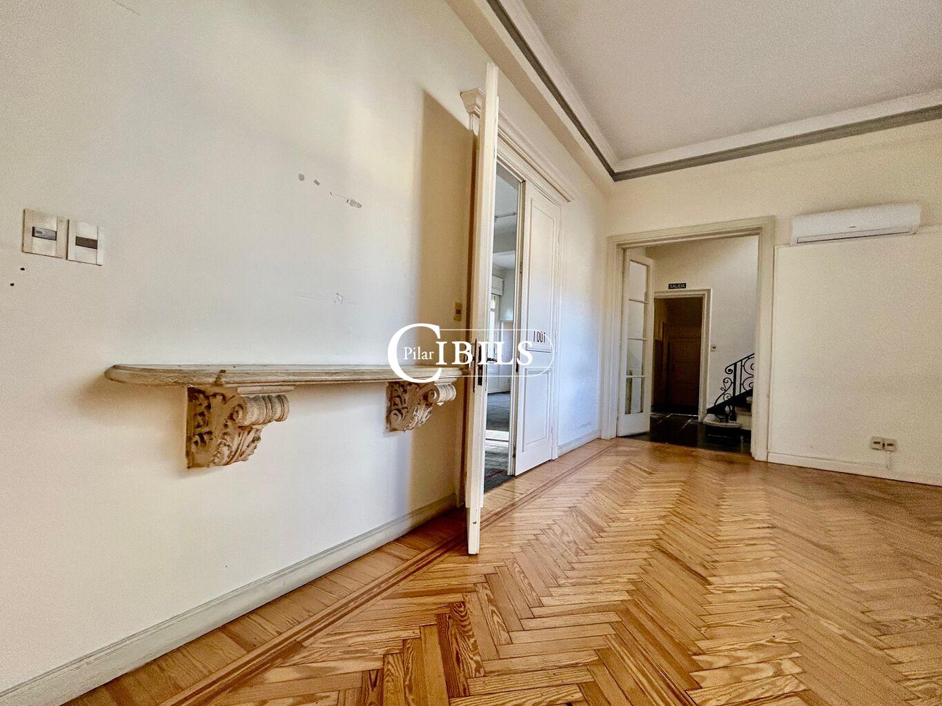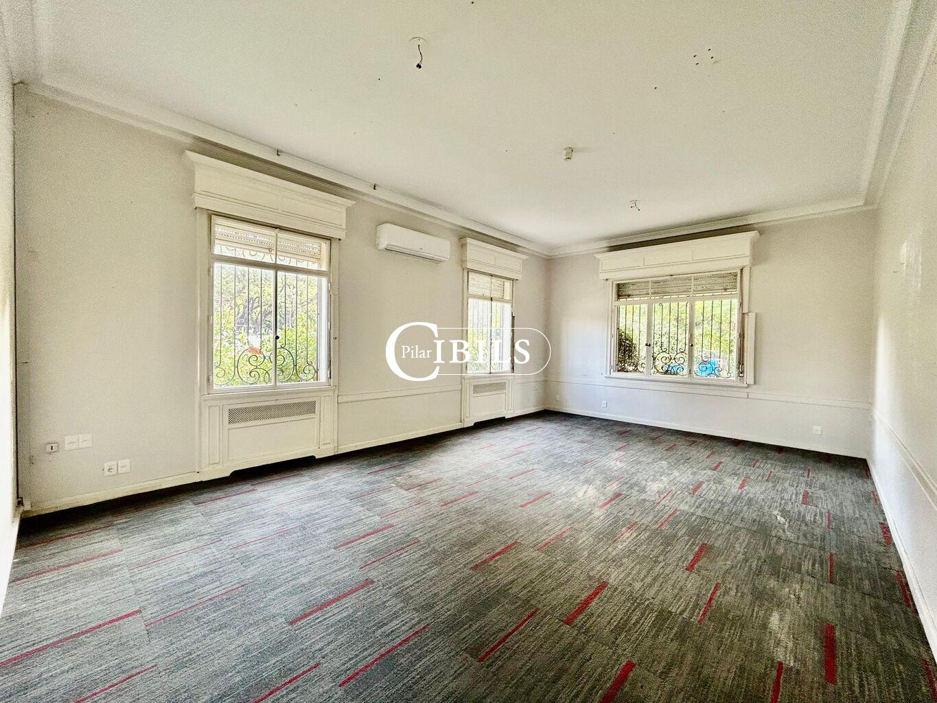 En planta alta, hay una gran hall de distribución, 2 grandes salones al frente con balcones al Parque, 2 oficinas, 2 baños, y en otro sector hay 3 oficinas más.