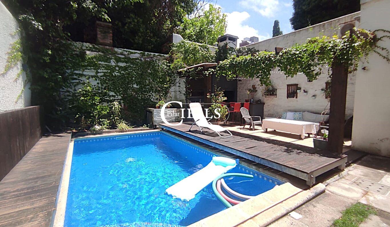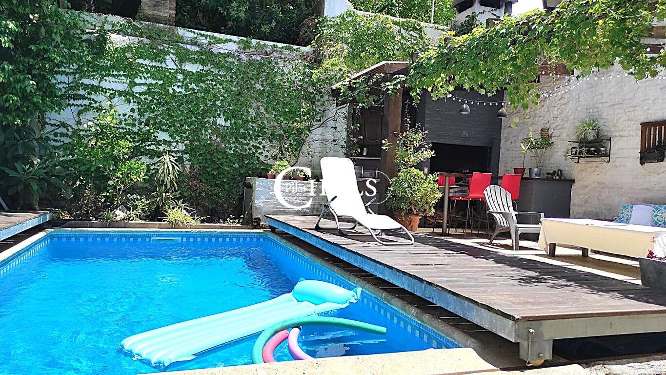Por otro lado, hay un estar diario con otra estufa a leña y la cocina integrada, comunicada a un patio con piscina, parrillero y baño completo.