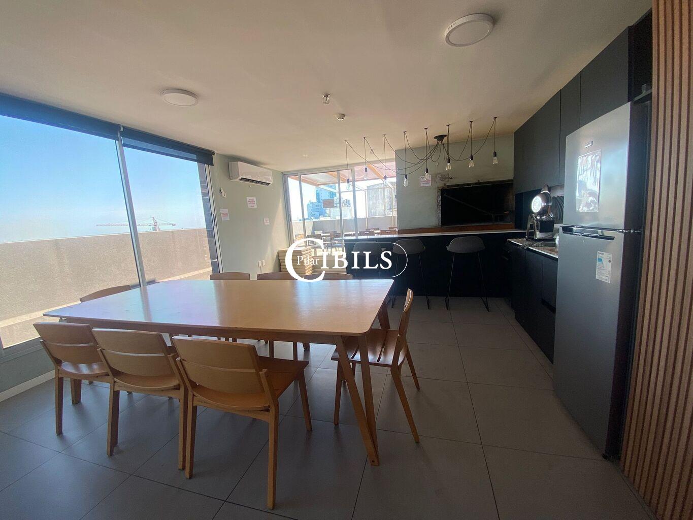 Muy lindo, luminoso y moderno apartamento, en excelente estado de un dormitorio con placard y baño completo, living con cocina integrada y balcón al frente. Aire acondicionado en el living, el cual tiene salida a un balcón. Persiana en living y dormitorio.Barbacoa de uso común con una vista única.